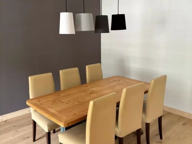 Pièce de vie lumineuse comprenant le salon et salle à manger, cuisine séparée et équipée (plaque induction, four, lave vaisselle)