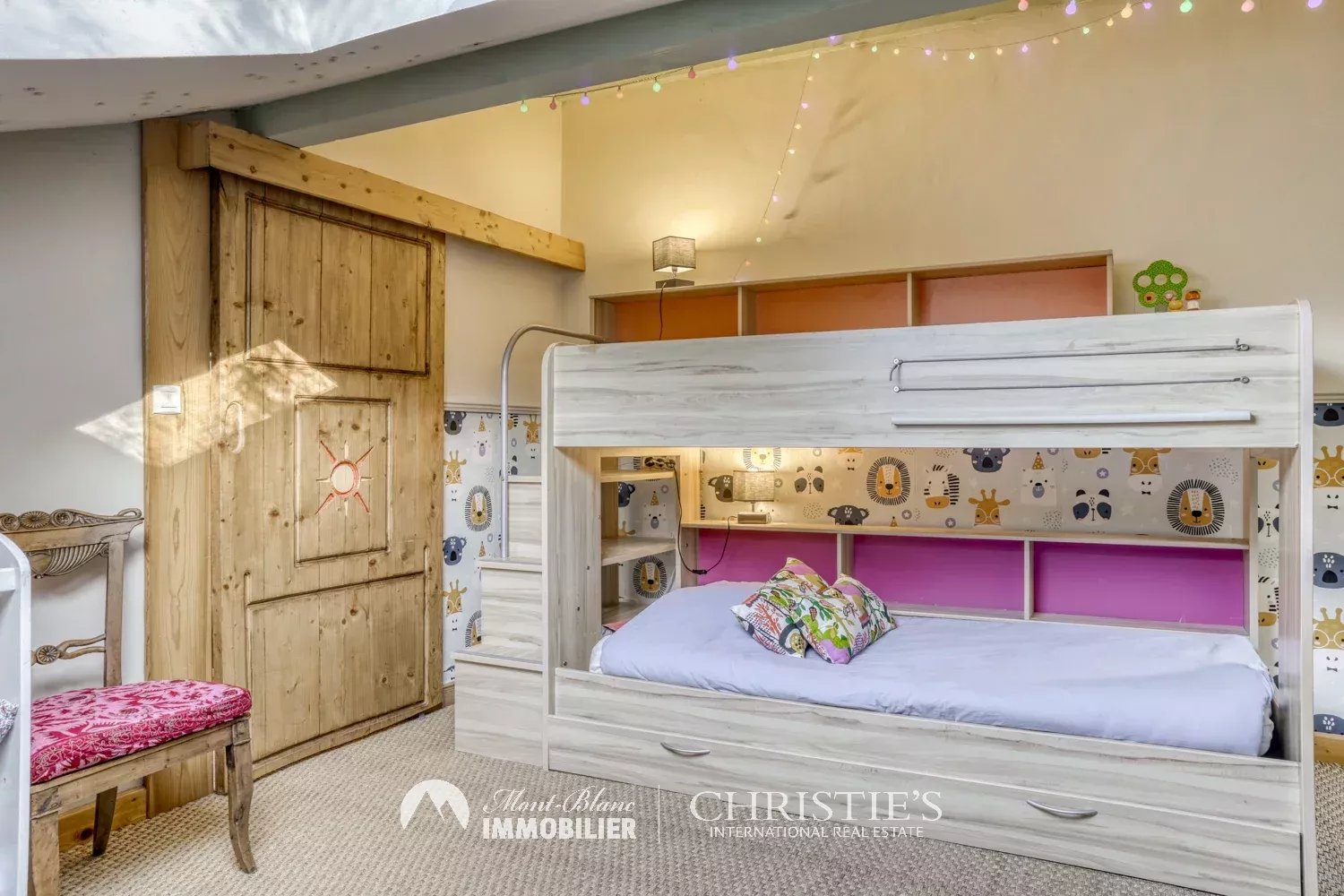 CHRISTIE'S INTERNATIONAL REAL ESTATE vous propose en exclusivité cette maison d'environ 180 m² habitable offrant une vue panoramique sur la sublime vallée et les sommets environnants.Cette propriété, rare à la vente, est nichée entre le village de Saint-Gervais-les-Bains et le charmant village de Combloux. Ce hameau paisible offre un cadre de vie agréable et calme. Profitez de ce chalet comportant trois chambres spacieuses, une pièce de vie d'environ 40 m² idéale pour profiter des moments en famille ou entre amis, un espace mezzanine aménagé, une buanderie, un grand sous-sol d'environ 75 m2 avec un garage offrant de nombreuses possibilités d'aménagements. Cette propriété offre un vrai potentiel de réaménagement à l'intérieur grâce à ses volumes généreux. À l'extérieur, un jardin exposé Est avec un grand terrain de 1326 m² constructible vous permettra de créer un aménagement paysager très agréable, avec une vue dégagée et à l'abri des regards dans un cadre champêtre.Venez découvrir ce chalet et exploiter tout son potentiel en bénéficiant de la proximité de Megève, Saint-Gervais et des activités de plein air.Possibilité d'édifier un second chalet sur la parcelle selon étude.