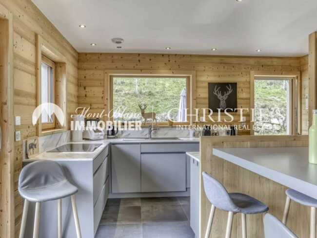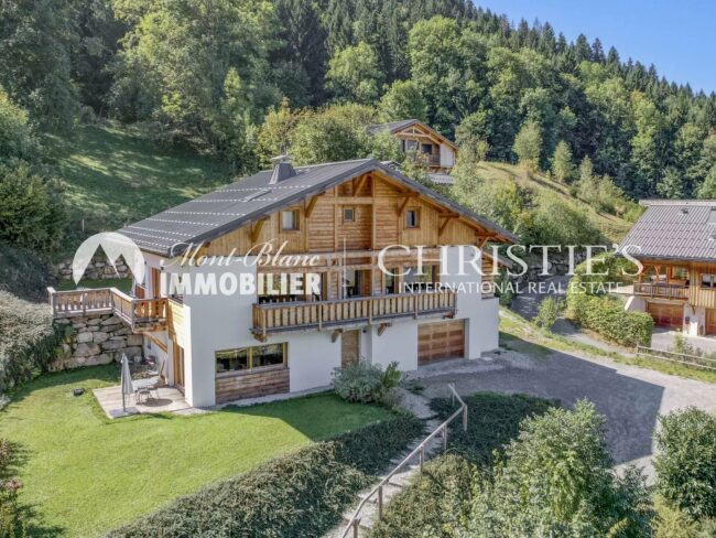 Situé à 1 200 m d’altitude, dans le secteur très prisé du hameau de Saint-Nicolas, ce chalet de 340 m² aux volumes généreux se déploie sur trois niveaux. Chaque espace, baigné de lumière, a été pensé pour inviter à la contemplation. La vaste pièce de vie de plus de 70 m² séduit par son incroyable vue sur la chaîne du Mont-Blanc et son accès direct aux terrasses et au jardin. Un salon avec cheminée contemporaine et larges baies vitrées crée une atmosphère douce et chaleureuse.