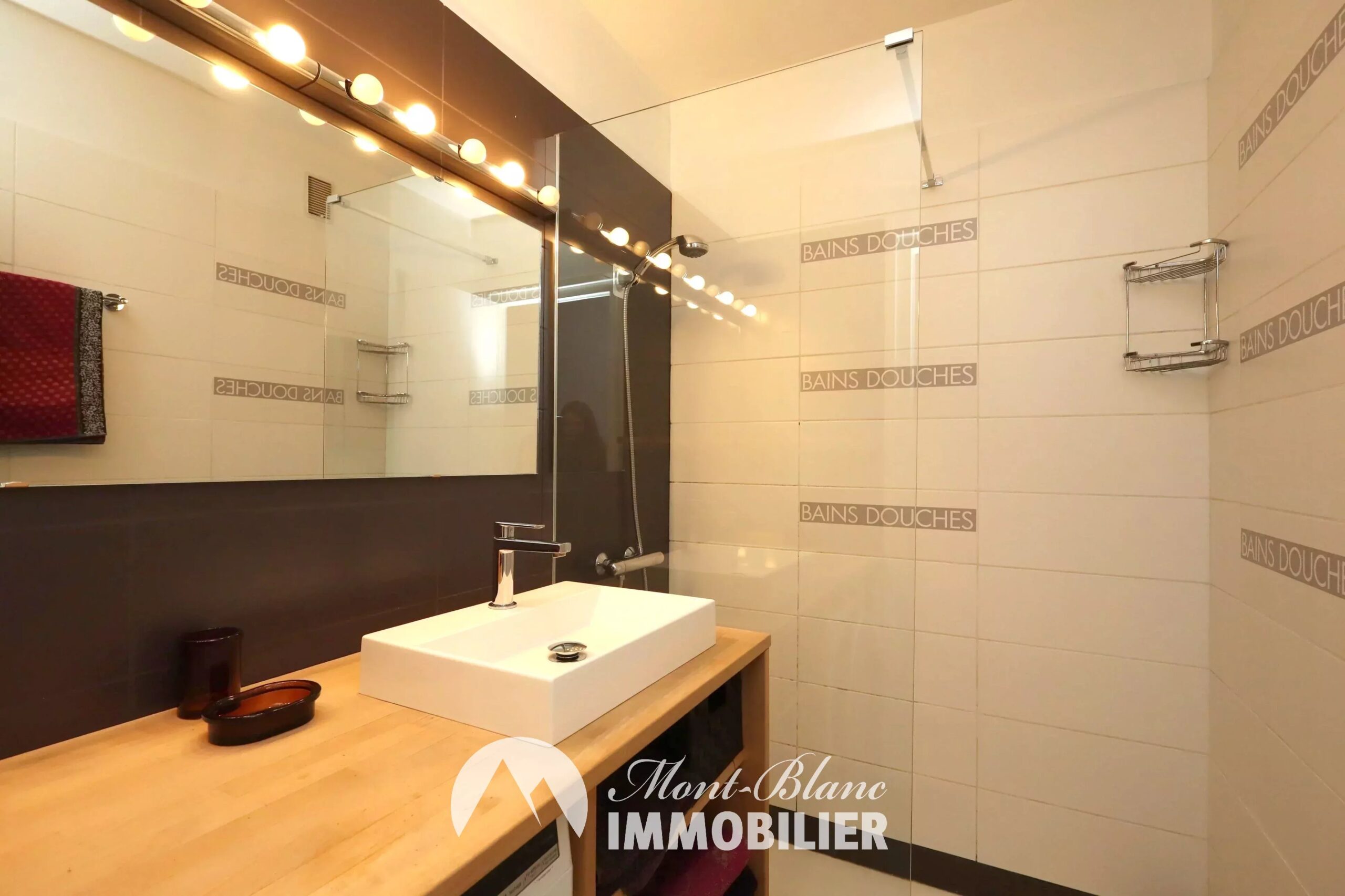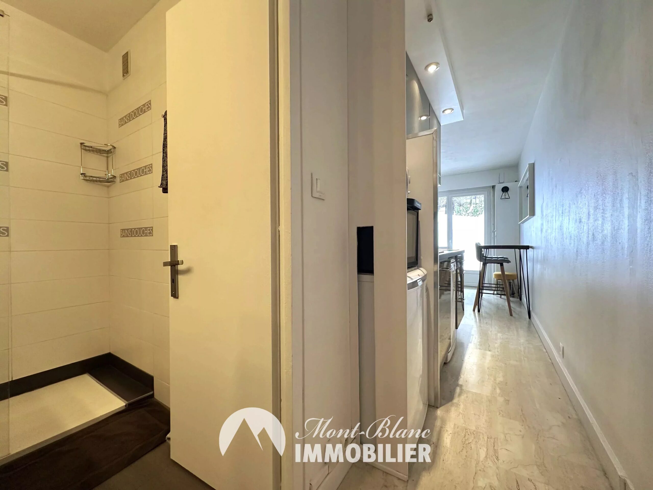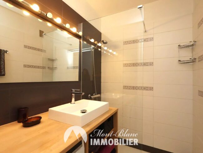 Les annexes sont un véritable atout : cave, casier à skis, local à vélos et parking privatif dans la résidence, critère très recherché à Chamonix.